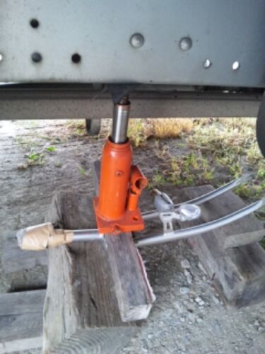 人の力で曲がる物ではありません。曲がったら困ります。 ジャッキでふみつけました。 少し戻し過ぎたようです(汗) フェンダーの取り付けが届かなくなりました(涙) しかしなんとかジョイントしました。 格好はつきました(笑) 自転車屋のお兄さんは、交換する…
